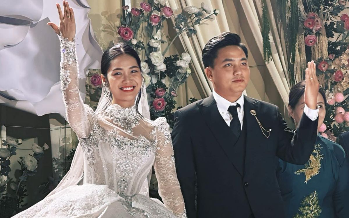 Trong ngày trọng đại, người đẹp sinh năm 1999 diễn bộ váy cưới xếp tầng tinh xảo, tôn lên vẻ đẹp lộng lẫy. Đặc biệt, khoảnh khắc xúc động nhất là khi cô khoác tay bố bước vào lễ đường, ánh mắt lấp lánh niềm hạnh phúc khi đón nhận tình cảm từ mọi người.