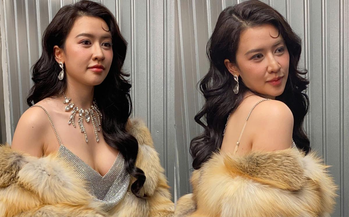 Theo đó, cô chọn diện một chiếc váy ánh kim nổi bật với phần dây vai thanh mảnh, tôn lên vóc dáng thon thả cùng đôi vai trần quyến rũ. Bộ trang phục được kết hợp khéo léo với áo khoác lông thú sang trọng và loạt phụ kiện đá quý lấp lánh, bao gồm vòng cổ và hoa tai đồng bộ.