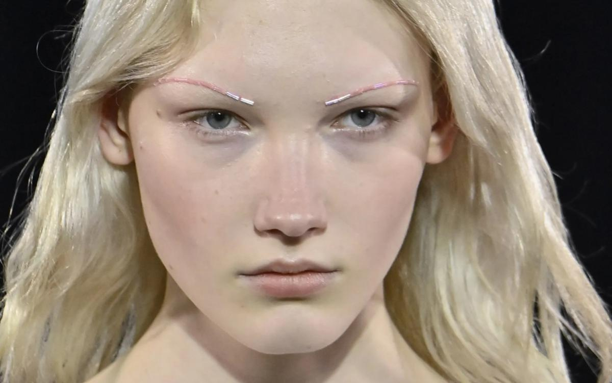 Chân mày – điểm nhấn của mùa này, được thực hiện qua ba bước: Đầu tiên, de Kluyver dùng son Byredo (các tông Lost In Letter, Eperdu và On The Edge) để vẽ nên những đường chân mày mảnh, cong. Sau đó, anh thoa một lớp keo dán chất liệu giả lên phần chân mày vừa vẽ, đợi vài phút để keo trở nên dính.