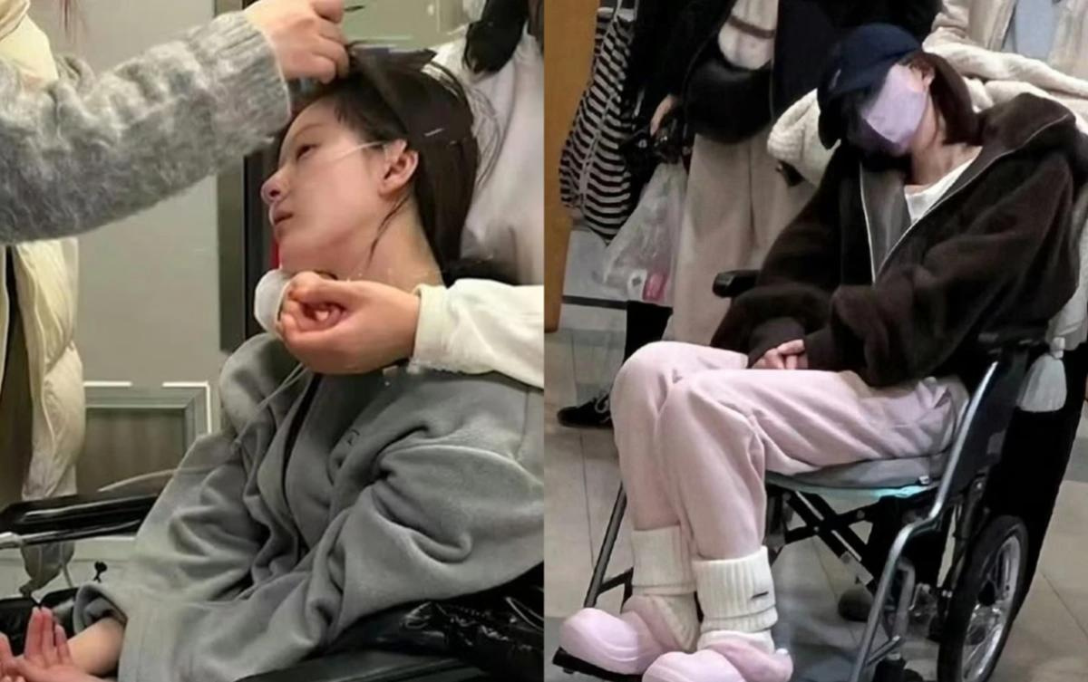 Hình ảnh Triệu Lộ Tư gần như mất ý thức ngồi trên xe lăn.