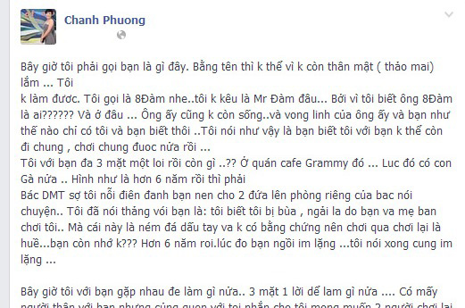 | Ảnh chụp màn hình đoạn status Phương Thanh chia sẻ về bí mật rạn nứt tình bạn của cô và Đàm Vĩnh Hưng |