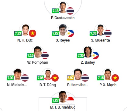 Đội hình tiêu biểu AFF Cup 2024 do Sofascore lựa chọn