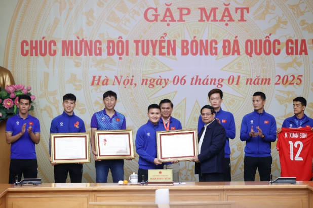 Mới đây, sau khi giành chức vô địch Giải bóng đá Đông Nam Á ASEAN Cup 2024, ĐTViệt Nam đã được Thủ tướng Phạm Minh Chính gặp mặt, chúc mừng, biểu dương và khen thưởng. Theo đó, Đội tuyển bóng đá nam quốc gia được trao tặng Huân chương Lao động hạng Nhất. 6 cá nhân của Đội tuyển được nhận Huân chương Lao động hạng Ba, gồm Nguyễn Xuân Son, Đỗ Duy Mạnh, Nguyễn Quang Hải, Nguyễn Tiến Linh, Nguyễn Hoàng Đức, Nguyễn Đình Triệu.