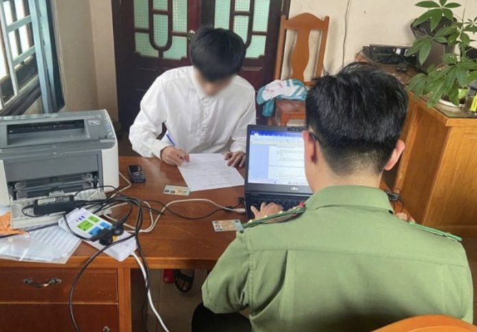 Đối tượng B.T.Q (sinh năm 2008, trú tại huyện Lâm Hà,) là người ở bên ngoài nhận và hỗ trợ giải, đọc đáp án đề thi cho thí sinh trong phòng thi. Ảnh: TTXVN phát