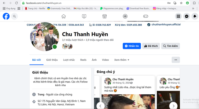 Trang fanpage Chu Thanh Huyền nơi bà V.N.H mua mỹ phẩm Hàn Quốc nhưng không được xuất hóa đơn