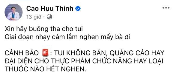 Trang chủ Tin tức Đến lượt bác sĩ Cao Hữu Thịnh, vội vàng đăng status: Xin hãy buông tha cho tôi