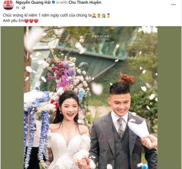 Thời gian qua, Chu Thanh Huyền gặp một số rắc rối liên quan đến hoạt động kinh doanh riêng, nhưng Quang Hải chưa từng lên tiếng. Bài đăng mới nhất của anh được xem là thông điệp khẳng định tình cảm dành cho vợ, bất chấp những lời bàn tán trên mạng xã hội.