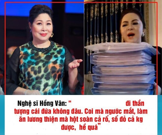 Mới đây, NSND Hồng Vân lên tiếng làm rõ thông tin về phát ngôn của mình liên quan đến doanh nhân Phương Hằng. Theo đó, nữ nghệ sĩ cho biết một fanpage đã đăng tải hình ảnh của mình và bà Phương Hằng kèm theo nội dung: “Nghệ sĩ Hồng Vân: ‘Đi thần tượng cái đứa không đâu. Coi mà ngứa mắt, làm ăn lương thiện mà hột xoàn cả rổ, sổ đỏ cả kg được, hề quá’”.