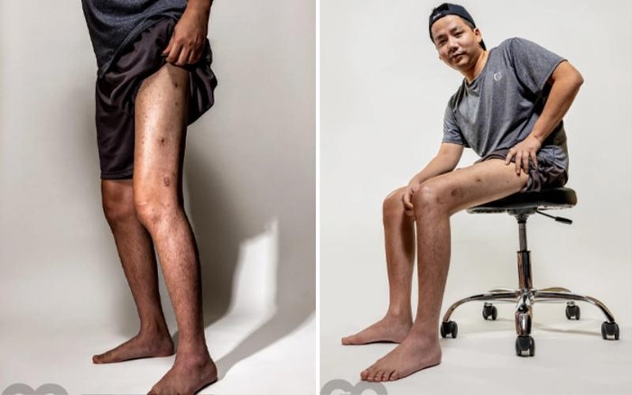 Hình ảnh của anh chàng ở thời điểm chuẩn bị phẫu thuật kéo chân.