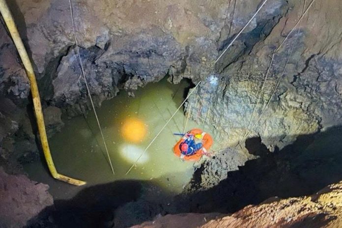 Khi có mưa lớn và nước trong hang dâng lên tác động vào Qua khảo sát, hiện tượng sụt lún ở ‘hố tử thần’ tại Na Rì, Bắc Kạn không dừng lại, miệng hố vẫn tiếp tục mở rộng. Mực nước trong hố dâng cao, gây nhiều khó khăn cho công tác cứu nạn.