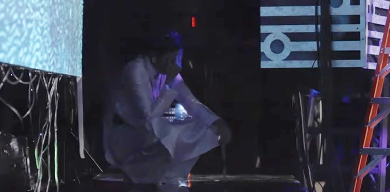 Và đáng chú ý là cảnh Hoài Linh vẫn mặc nguyên đồ diễn ngồi ngục sau cánh gà, tay chống lên trán vì quá mệt khiến người xem không khỏi xót xa. Tiếp đó là những cảnh nam nghệ sĩ mệt mỏi vì thiếu ngủ nhưng vẫn phải dốc sức chuẩn bị cho đêm diễn.