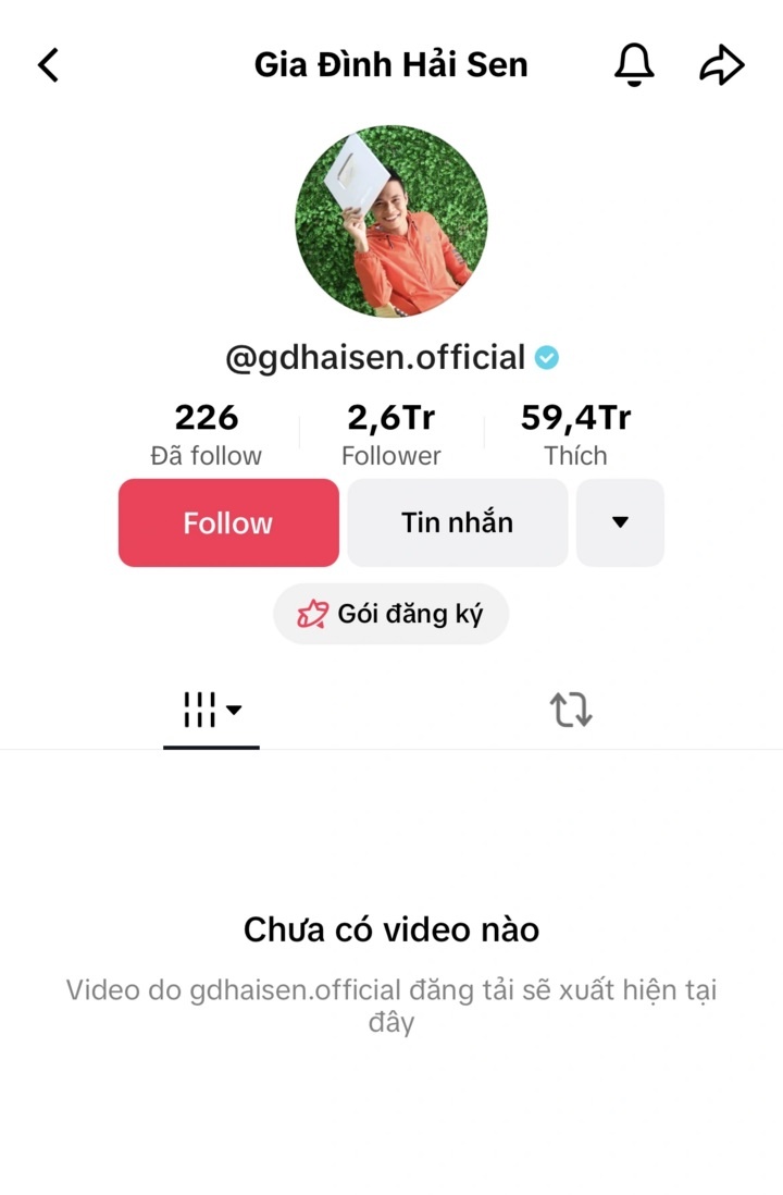 Bản thân Hải cũng có kênh TikTok riêng là Hải Sen với 1,2 triệu người theo dõi và 27,3 triệu lượt yêu thích.