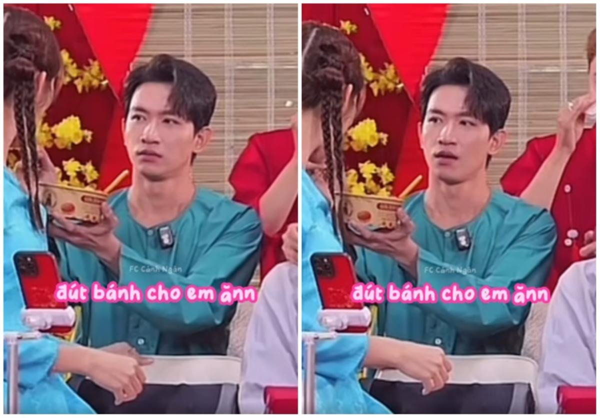 Võ Cảnh giúp Thúy Ngân ăn ngay trong livestream. (Ảnh FC Cảnh Ngân)